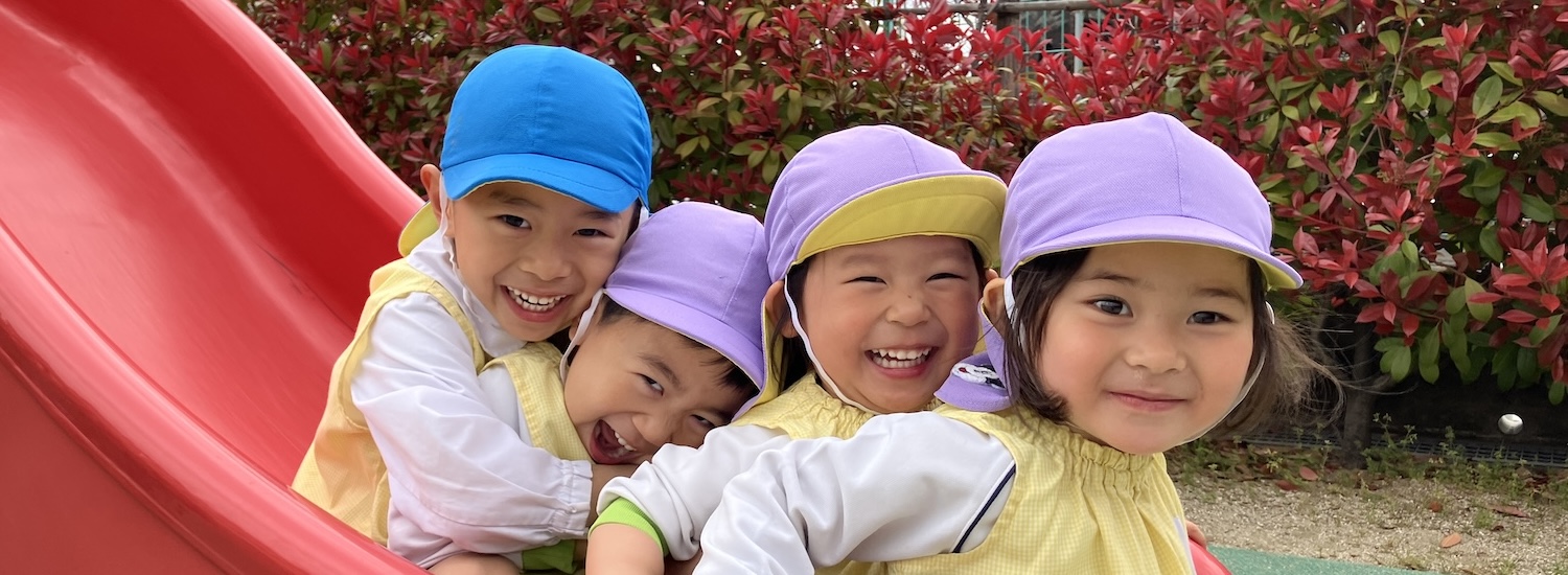 本園は全学年1クラスというアットホームな幼稚園です。クラス担任だけでなく、園務員さんやバスの運転手さんも含め、園にいる職員みんなで、子ども達の育ちを見守っています。また、職員同士で得意・不得意をカバーし合う、チーム保育や、自然体験やエコ活動、運動遊びなど、遊びの中で学べる事も本園の魅力です。